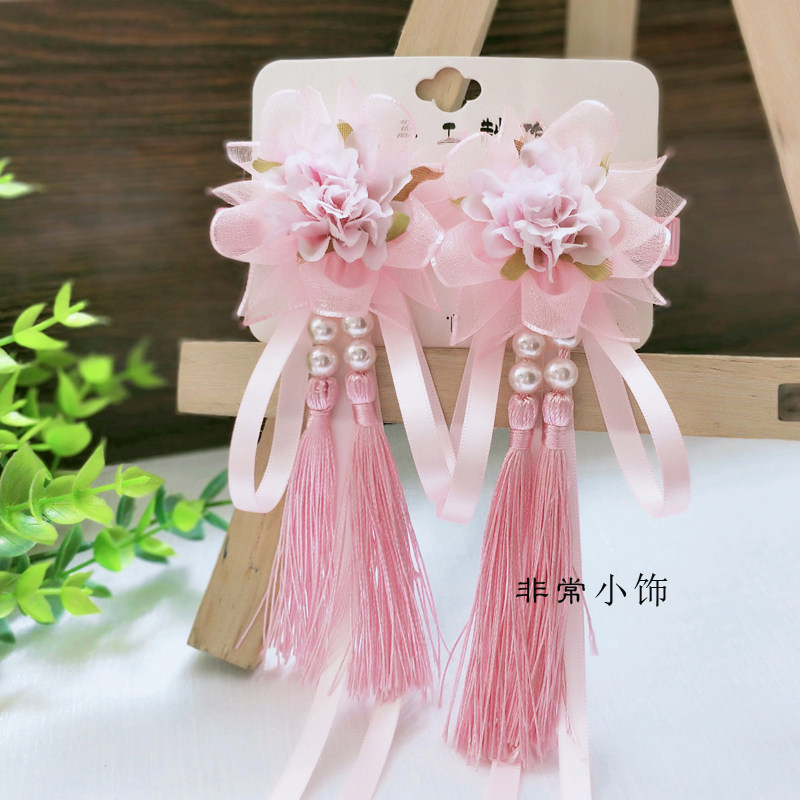 新品中国风女童发夹绢花甜美飘带发饰儿童汉服头花摄影配饰热门设计联盟服务商