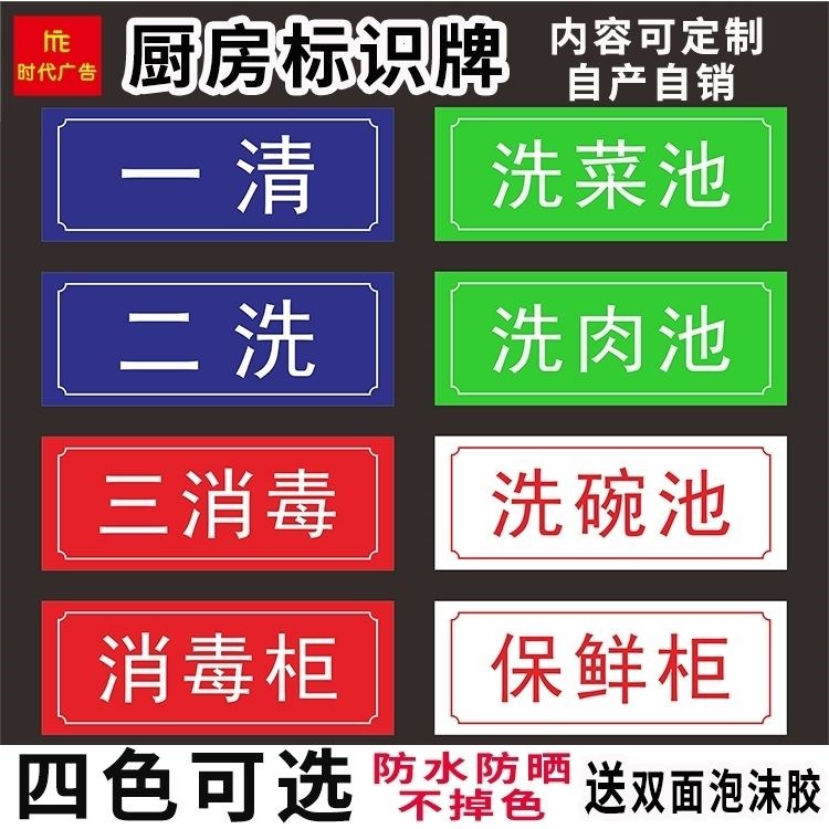 一清二洗三厨房标识标志牌子贴工厂学校幼儿园分类牌饭店检查热门设计联盟服务商