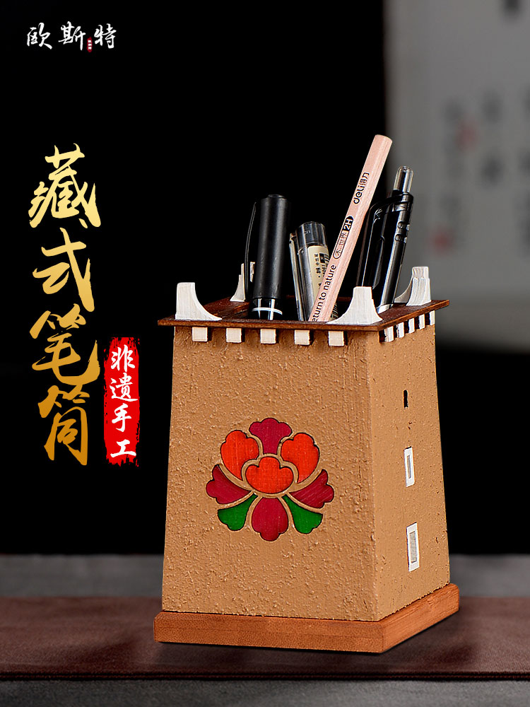 2021非收纳羌族桌面筒实手工木纪念品建筑遗文办公室笔筒创热门设计联盟服务商