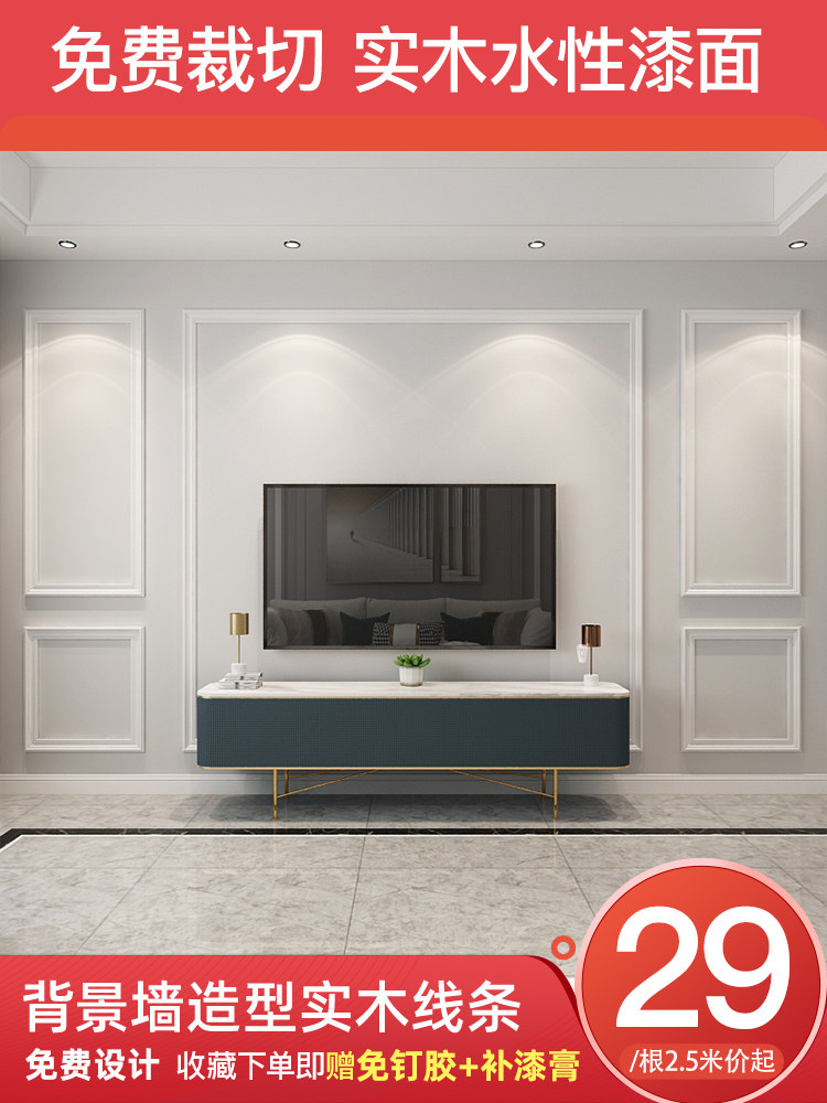 简约轻奢实木线条白色电视背景墙装饰造型边框欧式影视墙框架木条热门设计联盟服务商
