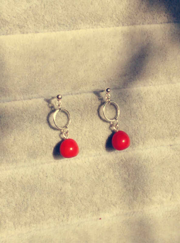 手工999足银耳钩红豆耳钉 原创设计女款 定做 七夕相思豆爱心热门设计联盟服务商
